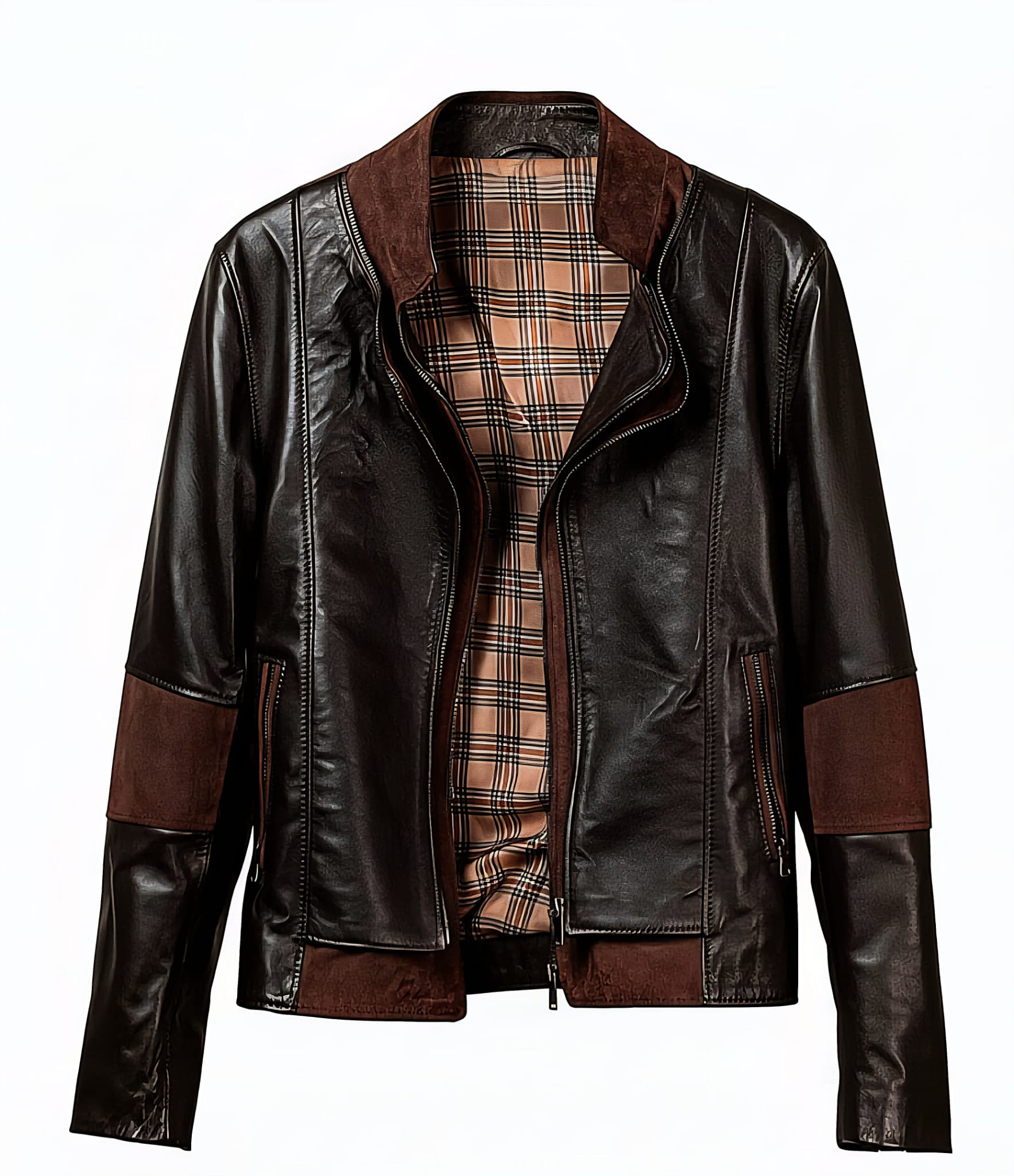 Dark brown genuine leather jacket with suede accents. A perfect mix of classic and modern style – versatile and timeless for any season.